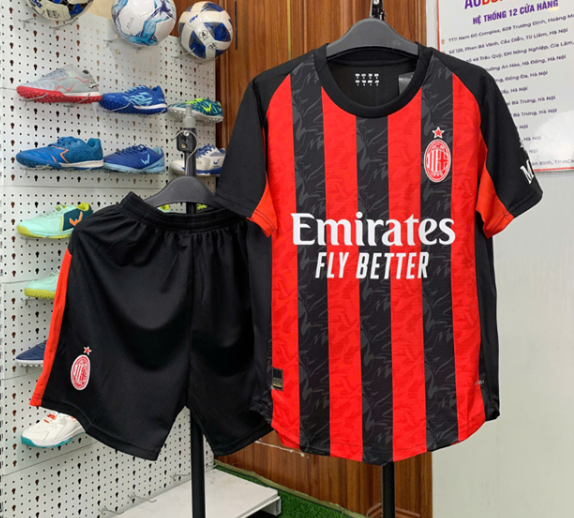 Áo bóng đá CLB AC Milan màu đỏ sọc đen mùa 2025–2026