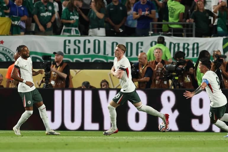 Tuy nhiên ngay đầu hiệp 2, Palmeiras đã tìm được bàn san bằng tỷ số. Sau đường căng ngang từ cánh phải của đồng đội, Estevao xử lý đẳng cấp để loại bỏ Colwill trước khi dứt điểm cực hiểm ở góc hẹp (trái bóng chạm xa ngang rồi chui vào lưới) làm bó tay Robert Sanchez.