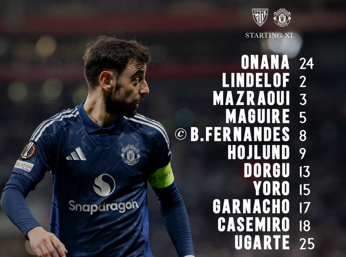 Manchester United: Andre Onana, Leny Yoro, Harry Maguire (De Ligt 65′), Victor Lindelöf, Noussair Mazraoui (Shaw 74′), Manuel Ugarte (Mount 65′), Casemiro, Patrick Dorgu (Amad Diallo 84′), Bruno Fernandes, Alejandro Garnacho (Mainoo 84′), Rasmus Hojlund.