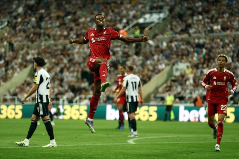 Ghi bàn: Guimaraes 57′; Osula 88′ – Gravenberch 35′; Ekitike 46′; Rio Ngumoha 90’+10