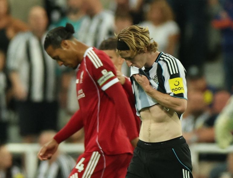 Chẳng những rơi vào thế bị dẫn bàn mà cuối hiệp 1, Newcastle còn lâm vào tình cảnh mất người khi Gordon phải nhận thẻ trực tiếp sau tình huống vào bóng có phần triệt hạ với Van Dijk. Ngay đầu hiệp 2, Liverpool đã gia tăng được cách biệt sau cú dứt điểm của Hugo Ekitike.